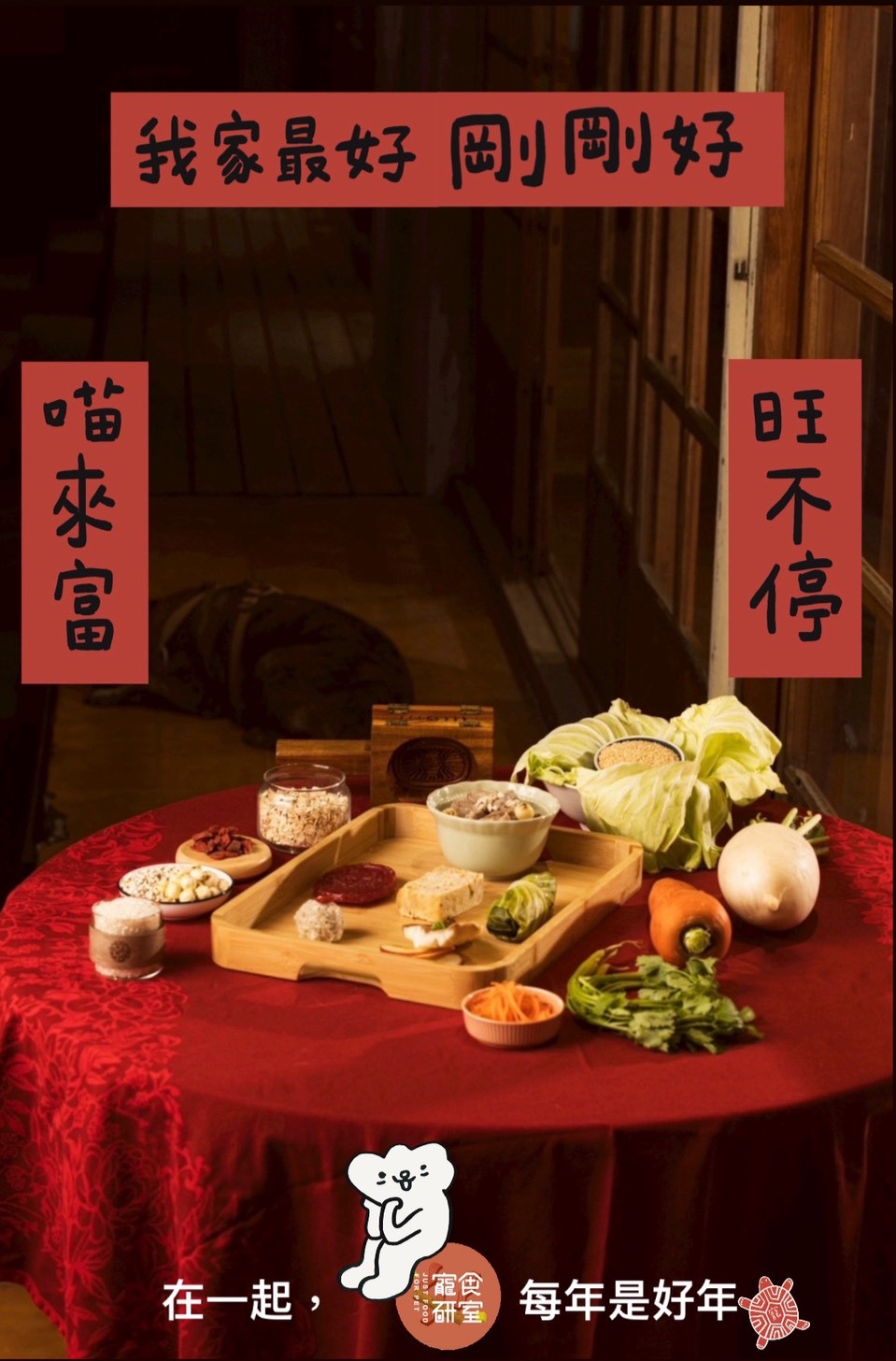本次年菜每組加贈李瑾倫老師手寫字『我家最好,剛剛好』寵物春聯乙份。